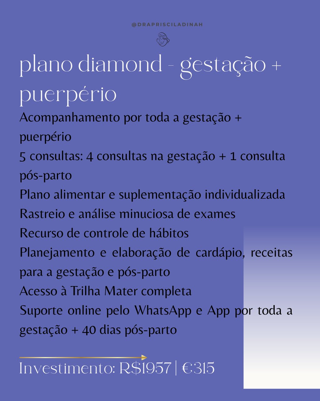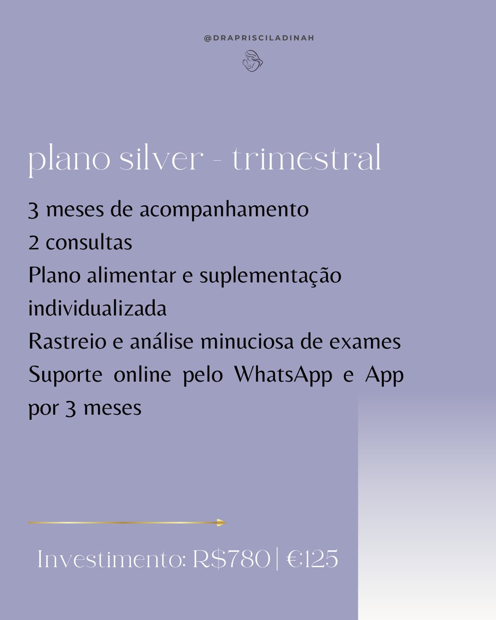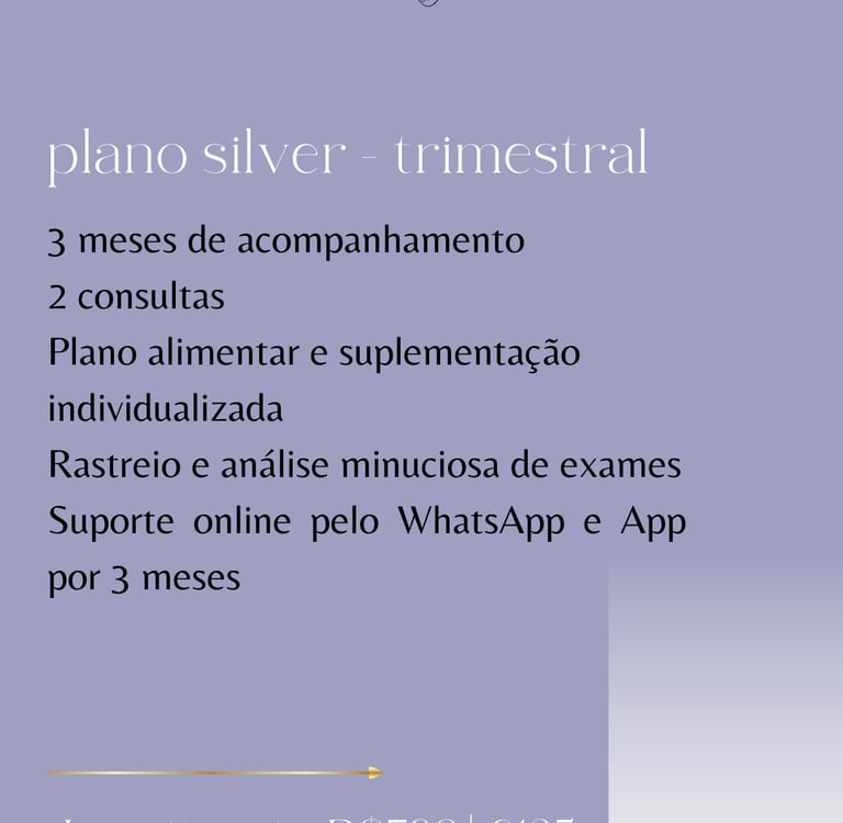 Você será acompanhada pelos check-ins semanais além do suporte diário pelo WhatsApp. Eu não apenas passo uma plano alimentar com suplementação. Eu monitoro a sua resposta ao tratamento a cada semana.